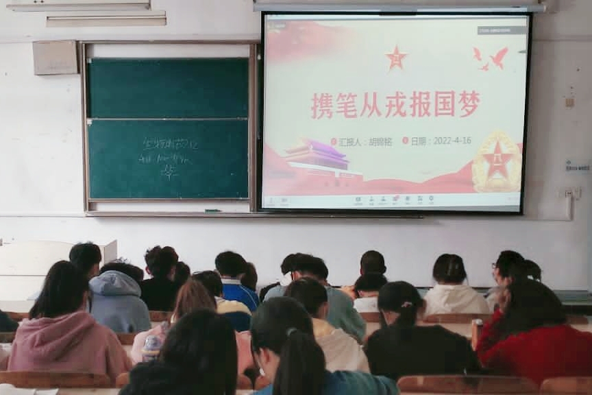 为促进毕业生充分高质量就业,进一步加大毕业生应征入伍政策宣传力度,帮助更多毕业生知晓应征入伍政策,4月16日上午,生命与健康科学学院在学院会议室开展2022年毕业生应征入伍“政策宣传咨询周”之政策线上线下宣讲会活动。学院大学生征兵工作组全体人员出席了线上、线下活动;2018级、2019级、2020级、2021级全体学生也参加了线上、线下活动。