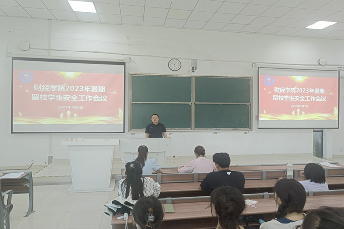 为加强暑期留校学生的安全教育和服务管理工作,确保留校学生度过一个健康、平安、充实、快乐的假期,7月5日,财经学院在致知楼C111召开2023年暑期留校学生安全工作专题会议。2024届毕业班辅导员、全体留校学生参加会议。会议由学院纪委副书记、团委书记薛枫主持。