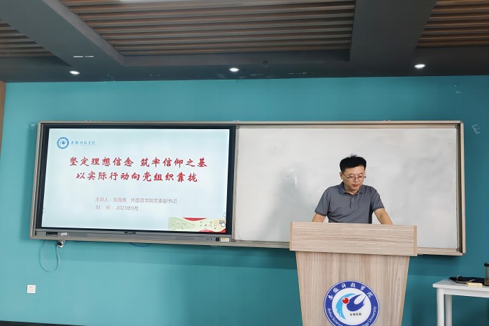 为扣好新生人生第一粒扣子,引导新生树立远大的理想,根据外国语学院新生入学教育方案,外国语学院于9月6日在求知楼B座309教室开展2023级新生开学第一课:理想信念专题讲座,讲座由学院党委副书记张海亮主讲。