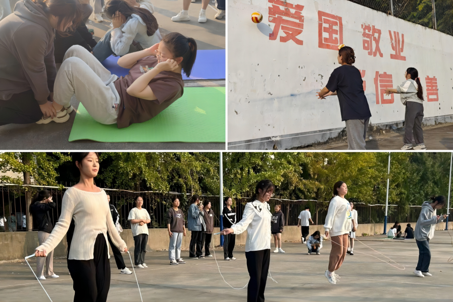 本次院运动会共设置比赛项目十六个,内容涵盖径赛、田赛、趣味赛三个类别。其中,径赛分为100米、400米、800米;田赛分为跳高、跳远、铅球;趣味赛分为男子三分投篮、90秒颠足球、引体向上以及女子仰卧起坐、跳绳和对墙颠排球。