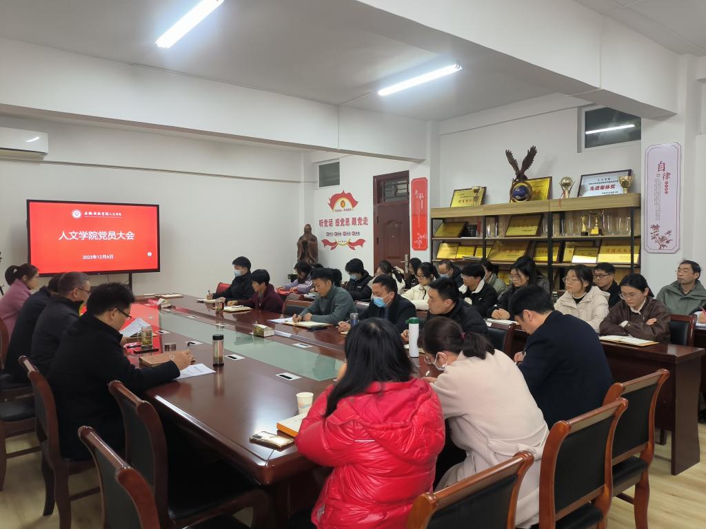 12月6日下午,人文学院党委在学知楼324会议室召开全体党员大会,补选中共乐玩在线第三次代表大会代表,开展全面从严治党宣传教育,会议由正处级组织员张严政主持。
