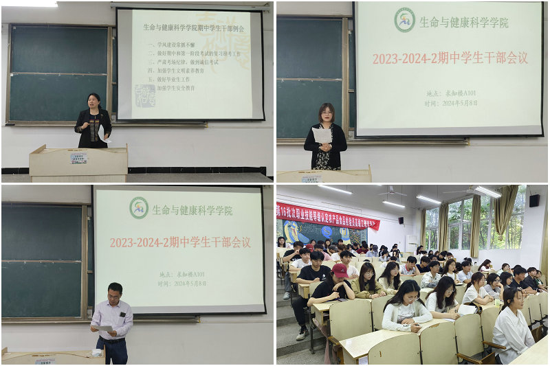 为提升学生干部综合素质,培养学生干部创新精神与责任意识,5月8日下午,生命与健康科学学院在求知楼A101教室召开期中学生干部会议。学院部分辅导员,各班班长、团支书、学习委员以及各学生组织成员参加会议。会议由正科级辅导员刘国祥主持。