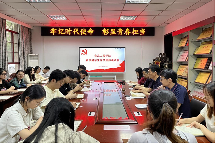 为进一步做好学生党员教育和培训工作,6月5日下午,食品工程学院在学院会议室举办2024年春季学期新发展学生党员集体谈话会。学院党委书记付光玺出席会议并讲话,各学生党支部书记、新发展党员参加谈话会,会议由学院党政办主任赵传磊主持。