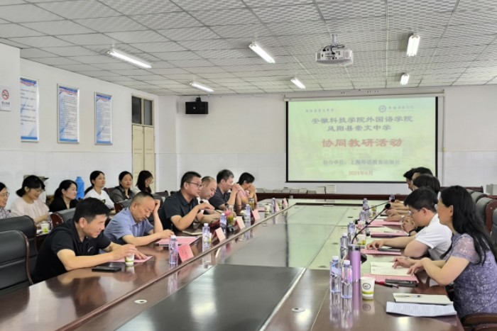 6月19日,外国语学院分别在凤阳县崇文中学和凤阳县实验中学成功举办了以“初中英语教师专业能力发展”为主题的协同教研活动。外国语学院院长刘萍携学院有关教师一行参与本次协同教研活动。凤阳县崇文中学党支部书记宋夕奎,凤阳县实验中学副校长王增禄,上海外语教育出版社安徽地区负责人徐杭总经理也出席了此次活动。