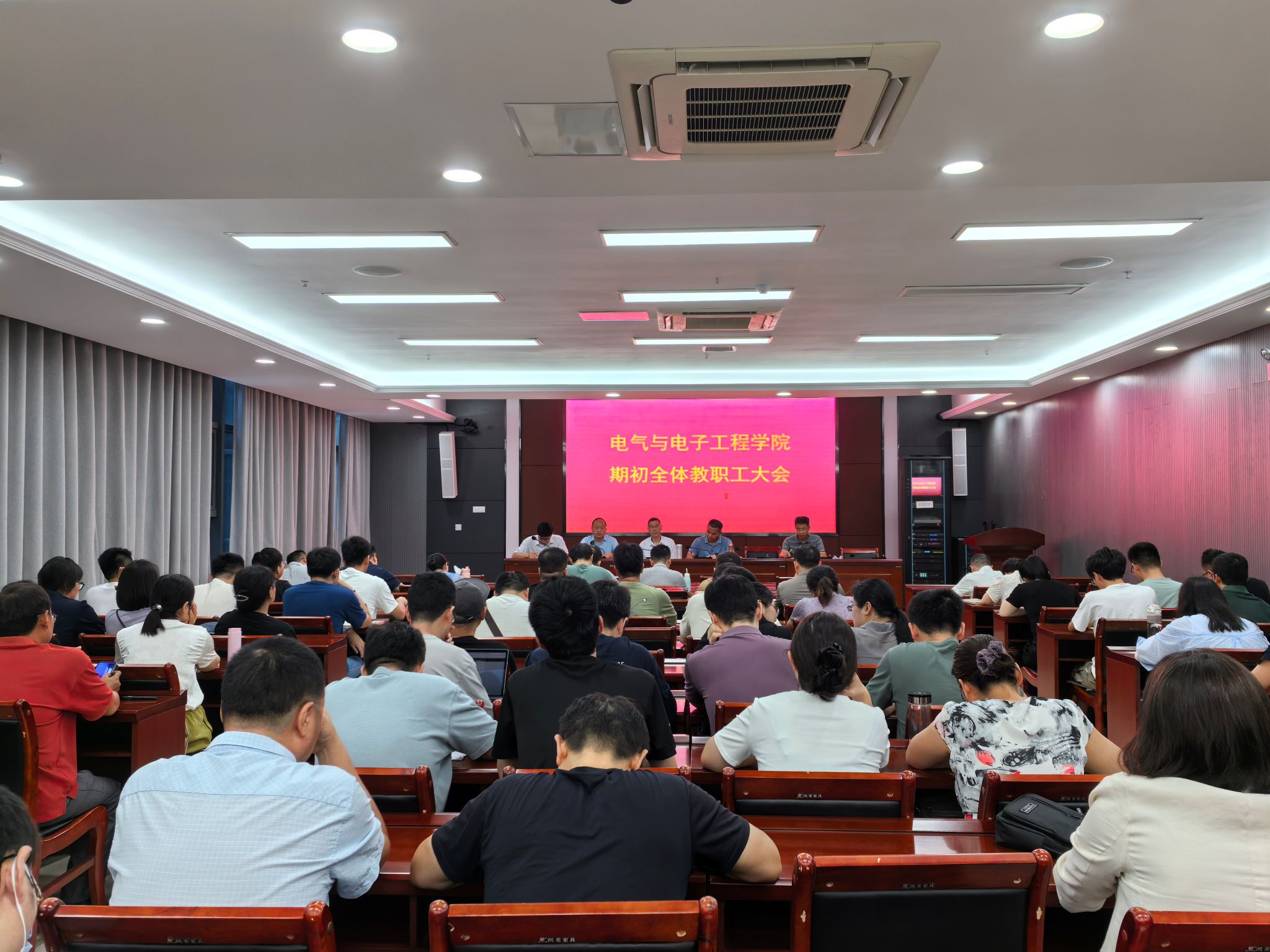 8月30日上午,电气与电子工程学院在西辅楼111会议室召开新学期全体教职工大会,学院党政领导及全体教职工参加了会议,会议由党委书记骆海邦主持。