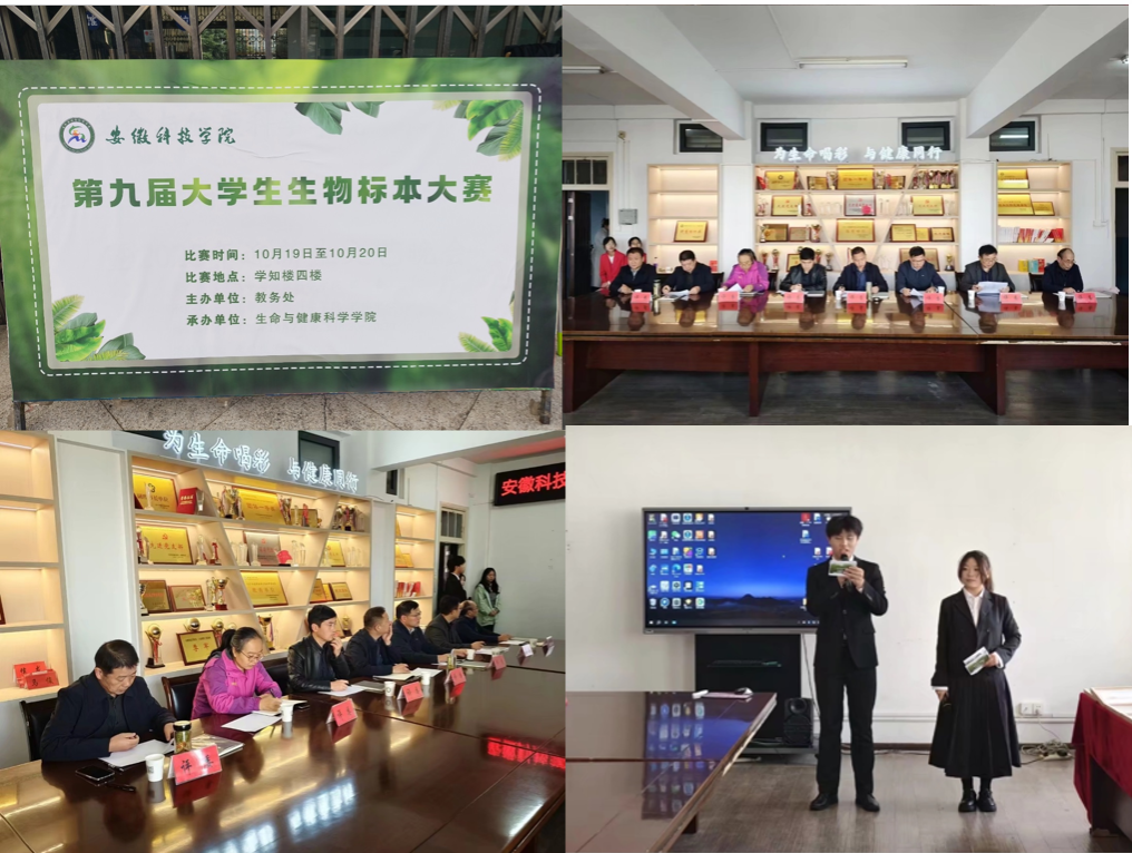 10月19至20日,2024年安徽省大学生生物标本制作大赛乐玩在线选拔赛在生命与健康科学学院成功举办。本次大赛邀请蚌埠学院食品与生物工程学院院长张斌教授,蚌埠医科大学生命科学学院实验中心主任吴华彰教授,我校教务处副处长高青海教授,农学院胡友军副教授,建筑学院郑艺鸿教授,动物科学学院郭伟娜博士以及生命与健康科学学院孙玉军教授担任此次大赛评委。