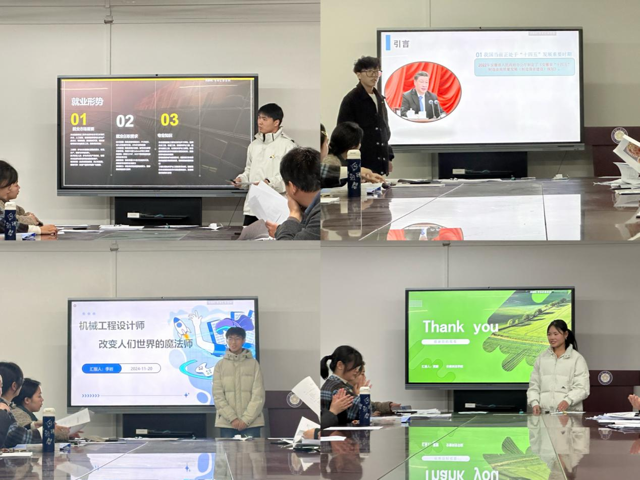 为全面普及大学生职业规划知识,传播生涯成长理念,提高大学生的创新能力、实践能力和就业能力,11月20日晚,机械工程学院在笃行楼409会议室举办大学生职业规划大赛。学院党委副书记张程、青年教师薛鸿翔和辅导员王永、朱香银、吴双应邀出席并担任评委。