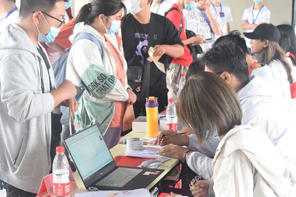 为迎接新生,建筑学院学生党员在学院的的指导下从新生辅导员助理培训、志愿者工作安排等各个方面对迎新工作进行了充分准备,使新生从报道前到报道中实现无缝衔接。迎新现场开始后,等待在接待点的学生党员迅速进入紧张有序的迎新工作中,2020级新生在党员的热情带领下完成注册报告并且前往报名处领取房卡,校园一卡通,新生家长也在工作人员的安排下待在休息区休息等候,整个报道过程有条不紊,秩序井然。