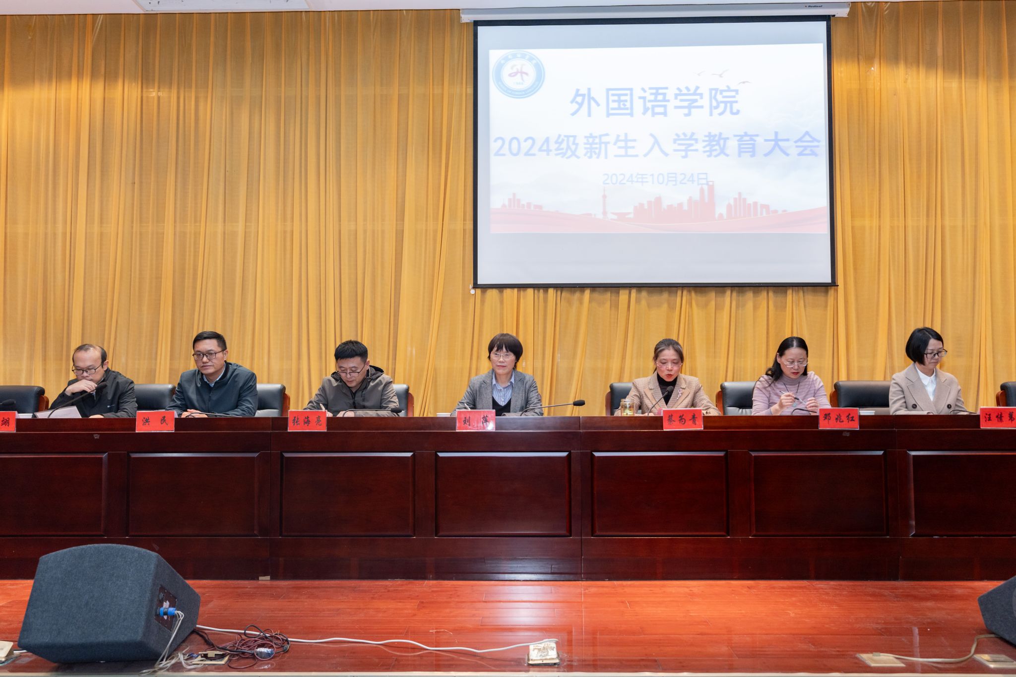 为进一步做好新生入学教育,引导新生更快适应大学生活,10月24日晚,外国语学院在新图书馆二楼报告厅召开2024级新生入学教育大会。外国语学院党政领导,英语、翻译教研室教师,2024级新生导师,全体辅导员,优秀校友代表,老生代表以及2024级全体新生参加大会,会议由学院党委书记蔡为青主持。