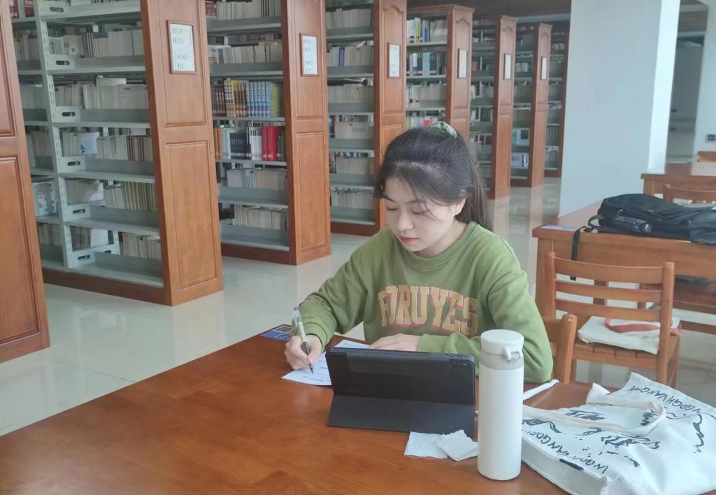 静谧的图书馆里,总能出现李欣然专心看书的身影。在李欣然眼里,阅读是快乐而非枯燥的,漫游在书籍的海洋里便是日常的放松。她向学弟学妹们建议:“有空就多去图书馆,在图书馆安静的环境下,你可以更好的进入学习状态,从而沉浸其中,大大提高学习效率。”
