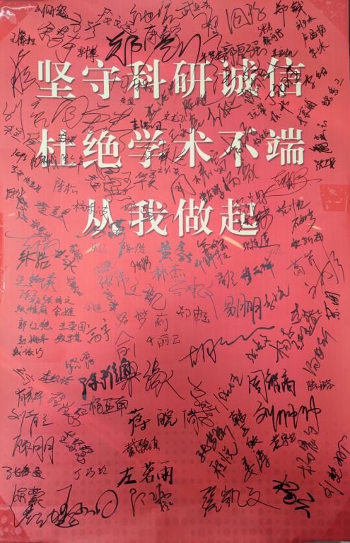 班会开始之前,2020级全体研究生依次在“科研诚信”签名墙上签名,承诺自己将遵守科研诚信。
