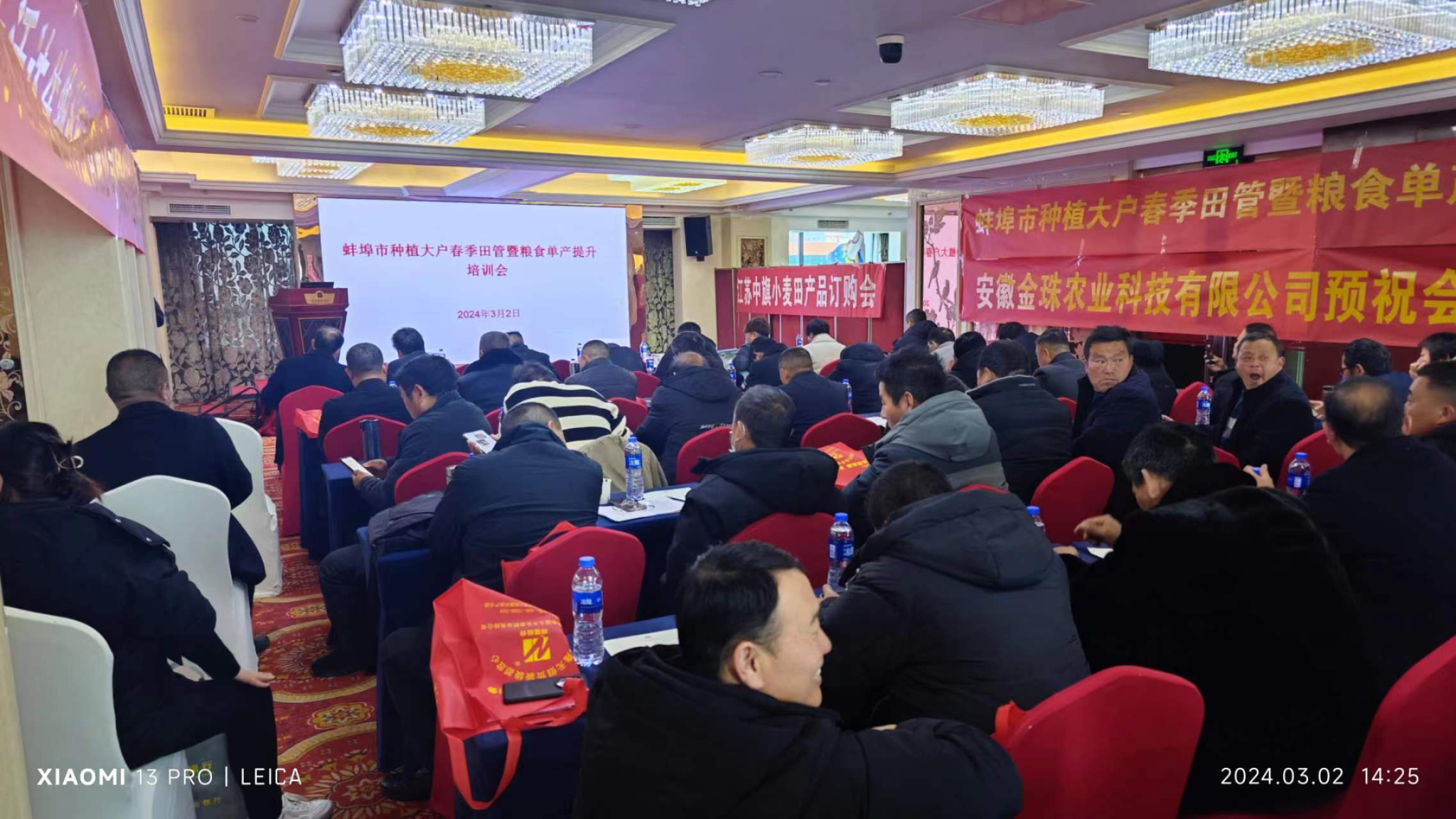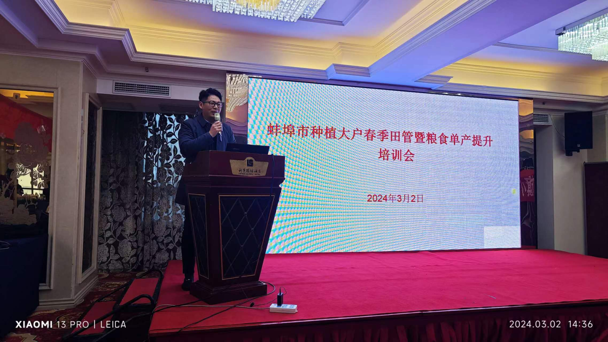 为了进一步彰显蚌埠市农学会的科技引领和社会服务作用,响应国家和安徽省对粮食单产提升的要求,针对今年春季雨雪低温冰冻天气的不利影响,指导农户开展春季田管,蚌埠市农学会于3月2日在蚌埠市举办种植大户春季田管暨粮食单产提升培训会,蚌埠市农业农村局党组成员、总农艺师赵入德,安徽省植保总站防治科科长邱坤,蚌埠市农业技术推广中心主任孙善军,蚌埠市农商银行党委书记、董事长赵静雅,国元保险蚌埠中支委员、总经理助理张克以及蚌埠市种植大户100余人参加了培训会,会议由蚌埠市农学会理事长、乐玩在线资源与环境学院院长李孝良主持。