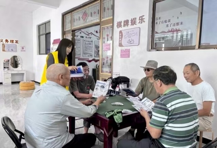 七月的安徽乡村,蝉鸣裹着热浪滚过晒谷场。太和县苇张村民委员会的屋檐下,涌动着别样的生机。七八位老人正跟着一个年轻姑娘的声音轻轻晃动脑袋——“社区的‘区 ’,舌尖要往上卷,像含着颗小枣儿......”实践团队成员张艳翻开彩印手册,用通俗易懂的话语,从日常交流的常用词汇教起。指尖划过“菜场”“吃饭”这些红圈标注的词,在亲切引导下,方言惯性里拘谨的老人,慢慢放松跟读,让普通话韵律,悄然融入乡村日常。