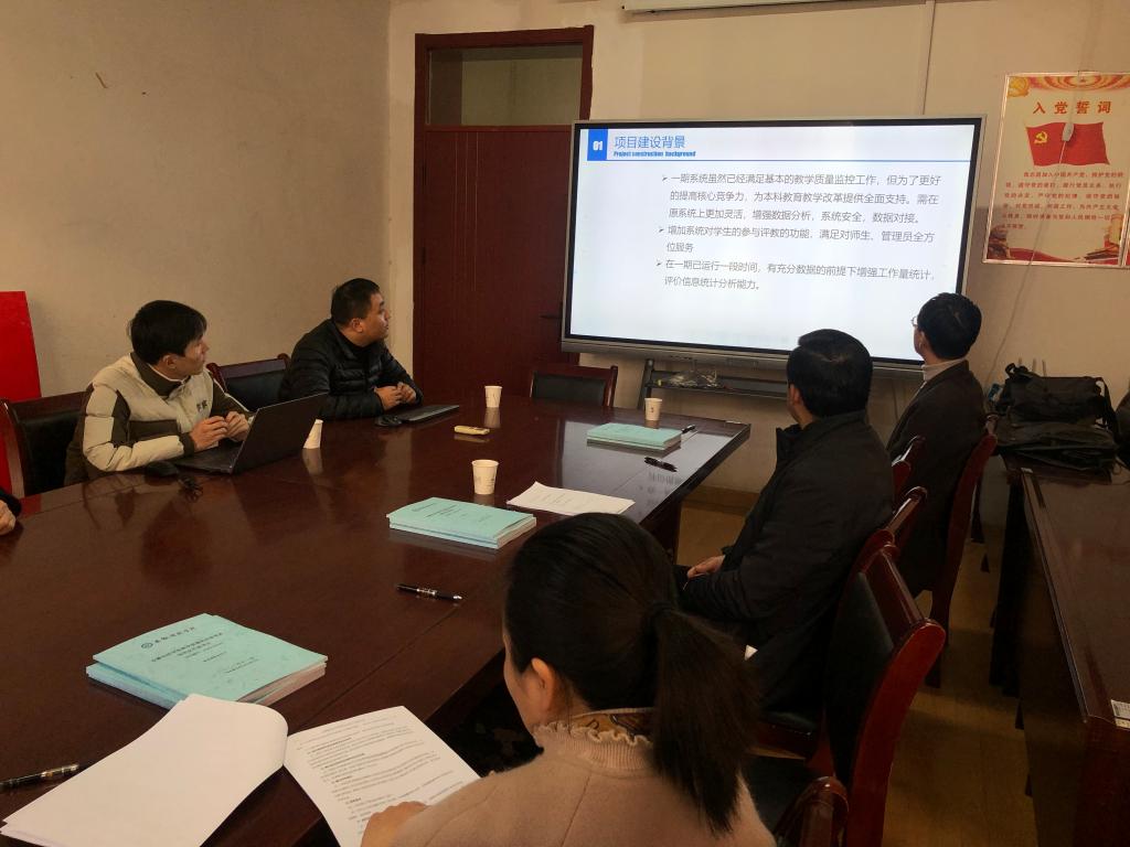 2021年12月2日下午,督导考核办公室在教务处会议室组织开展乐玩在线教学质量监控管理系统优化升级项目验收工作。参加验收会议的有教务处、财务处、网络与信息技术中心、国有资产管理处、督导考核办公室和项目实施方的相关技术人员,验收会由督导考核办公室主任程斌主持。