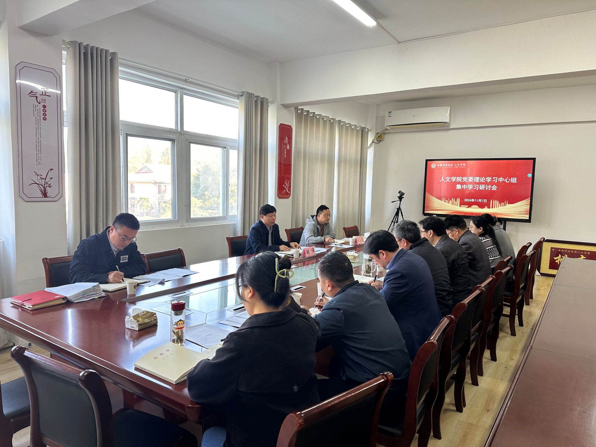 11月7日上午,根据学校党委《二级党组织理论学习中心组学习列席旁听工作实施方案》和党委宣传部相关通知精神,校党委书记时伟莅临指导人文学院党委理论学习中心组集中学习研讨会。本次学习研讨会主题为“贯彻习近平文化思想,助力文化强国建设”,由人文学院党委副书记、院长李晓东主持。党委宣传(统战)部副部长胡文靖、宣传教育科科长于宏亮列席旁听。