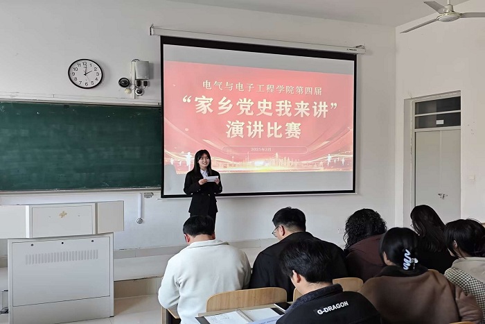 327日,电气与电子工程学院于致知楼 C108举办第四届“家乡党史我来讲”视频演讲比赛,学院专职辅导员担任评委。2023、2024 级学生代表参加比赛。