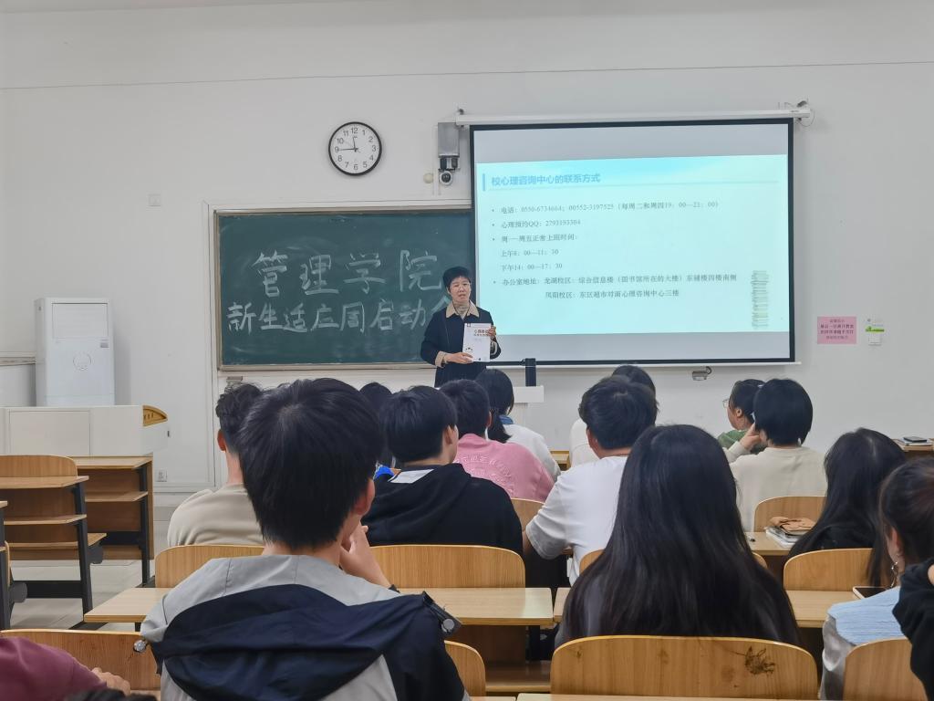 10月27日下午,管理学院开展了新生班级心理适应周启动会,管理学院党委副书记陶漫出席会议,会议由姚姝媛主持。会上,陶漫对新聘任的2023级各班心理委员表示祝贺,重点解读了心理委员的重要性,同时,就如何做好心理健康教育工作,希望全体心理干部要强化担当意识,明确角色定位,积极做美丽心灵的守护者;强化学习,努力做心理健康教育的示范者和传播者;增强敏感性和细心度,当好心理危机问题学生的“发现者”,最后她希望全体心理干部要努力用爱心、耐心和细心,去关心关注身边人,积极为身边的同学提供帮助,携手互助,确保班级同学健康成长成才,促进学校与社会的和谐稳定。