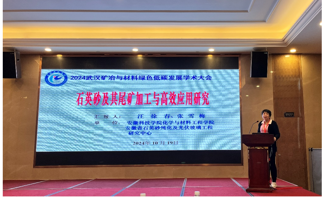 10月19日,由中国地质大学(武汉)、武汉工程大学、武汉科技大学、武汉理工大学、湖北三峡实验室联合主办的2024武汉矿冶与材料绿色低碳发展学术大会在武汉开幕。安徽省石英砂纯化和光伏玻璃工程研究中心主任汪徐春一行应邀参加,我校张雪梅教授做学术交流报告。