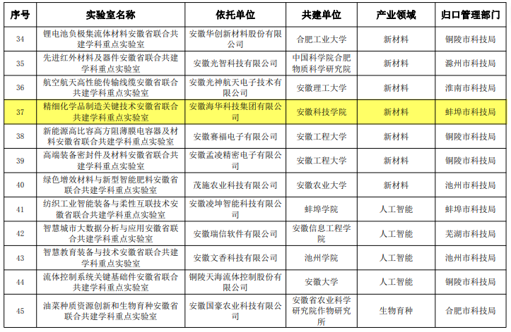 2023年3月,安徽海华科技集团有限公司联合乐玩在线申报并获批了精细化学品制造关键技术联合共建学科重点实验室(筹),其中安徽海华科技集团有限公司为主持单位,承担实验室主体建设工作;学校为联合共建单位。