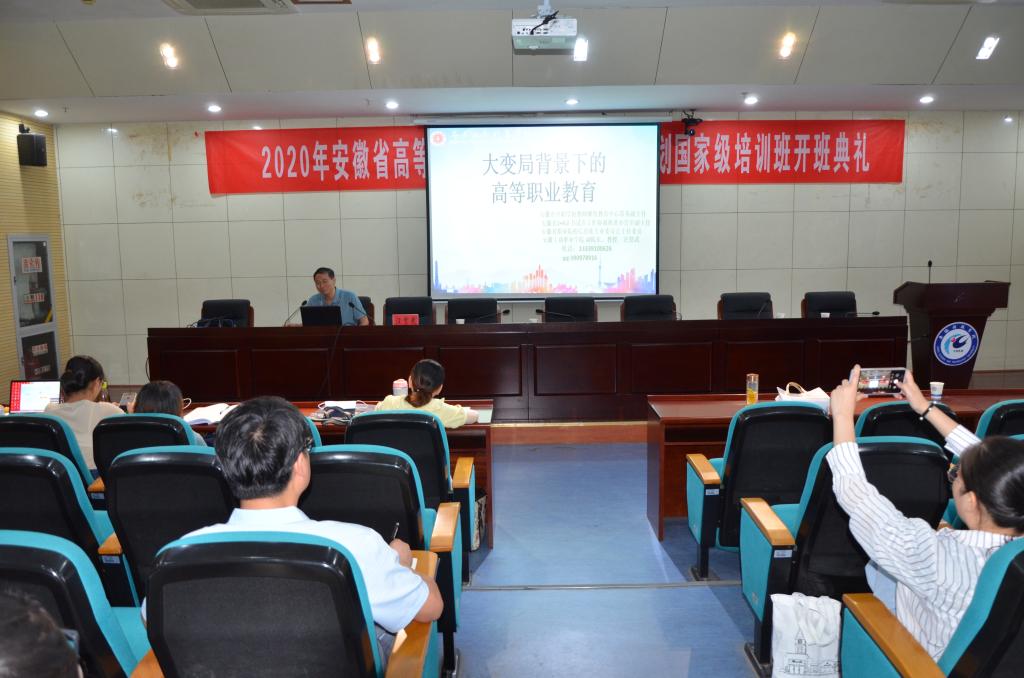 为贯彻落实全国职业教育大会及《国家中长期教育改革和发展规划纲要(2010-2020年)》精神,根据《安徽省教育厅关于做好安徽省高等职业院校教师素质提高计划2020年度国家级培训项目工作的通知》(皖教秘人〔2021〕77号)及安徽省高等职业院校教师素质提高计划国家级项目培训启动视频会议要求,我校认真组织实施中职院校教师素质提高计划国家级培训任务,7月4日上午8点,在校第一报告厅举行了安徽省高等职业院校国家级素质提升计划2020年度国家级培训班的开班典礼。乐玩在线党委副书记、院长李震,安徽省高等学校师资培训中心常务副主任袁德水,安徽工商职业学院副院长汪贤武,我校资产经营管理部副主任张敬强(主持工作)、农学院副院长李文阳、继续教育学院院长杨维来及该培训班的全体学员等出席了会议。会议由杨维来主持。