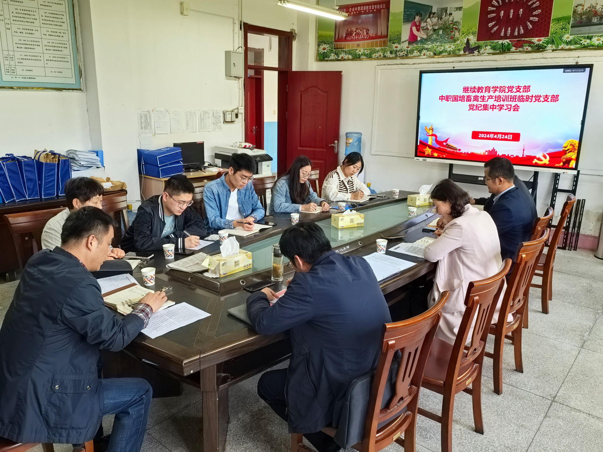 继续教育学院党支部、中职国培畜禽生产培训班临时党支部联合开展党纪学习教育专题学习交流会