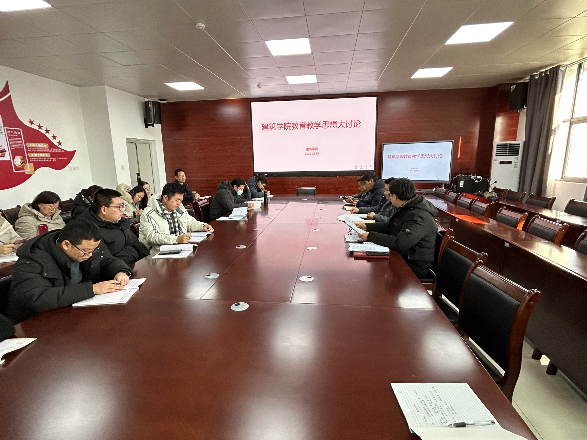 12月18日下午,在龙湖校区尚行楼A301会议室,建筑学院召开了教育教学思想大讨论活动,学院处级干部、教研室主任、实验室主任、教学秘书、党政办主任及教师代表参加了会议。会议由副院长吴伟东主持。