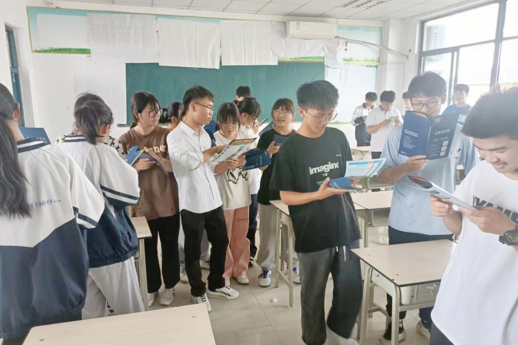 师生交流互动环节,团队成员通过宣传折页,向学弟学妹们详细介绍了乐玩在线的本科专业种类以及本科一批、二批和提前批的招生情况,就学习、生活、职业规划等问题帮助母校学子答疑解惑,一一回答了同学们比较关心的安科校园环境、住宿、食堂、大学活动、2025更名大学发展规划等问题。通过实地宣讲,同学们对安科充满了向往、充满了信心,期待九月在安科与学长相遇。