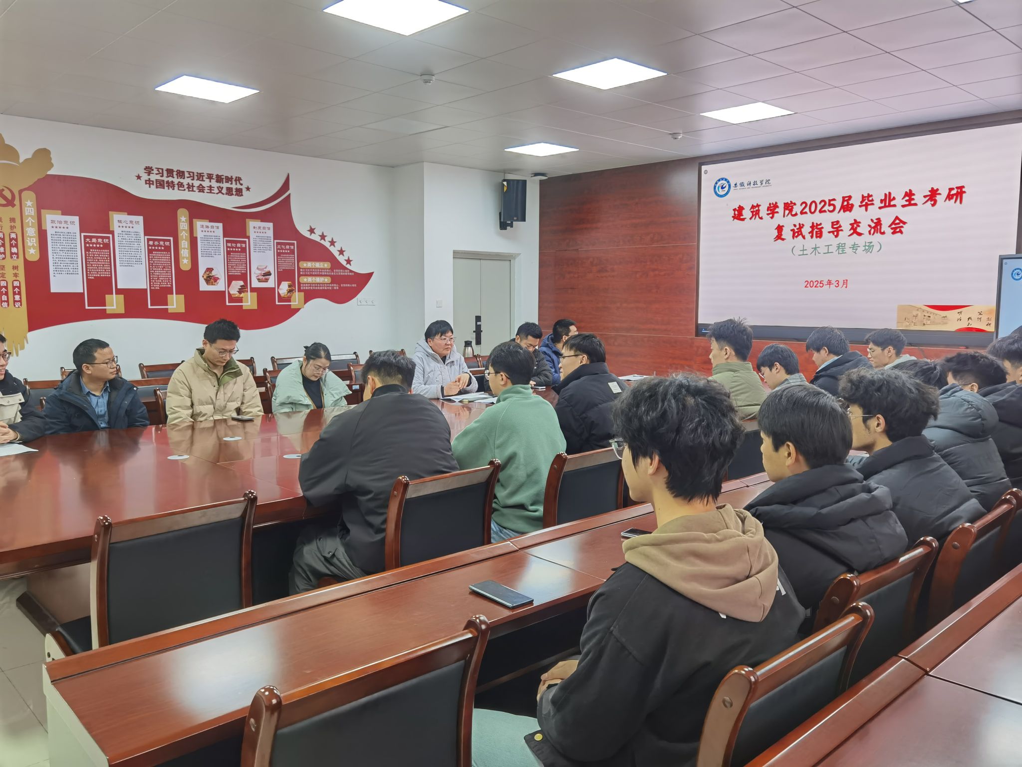 为助力考研学子高效备战复试,提高毕业生考研录取率,3月11-12日,建筑学院分专业组织开展了考研复试指导交流会。学院党政领导、各教研室老师、毕业班辅导员及全体过国家线考研学生参会。会议由学院党委副书记谢宜勤主持。