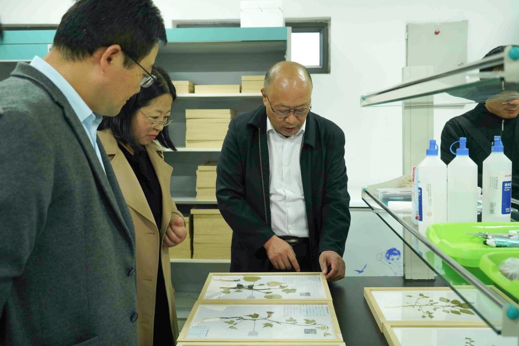 殷雨虹一行首先赴农学院植物保护平台杂草种子库、植物生长室、杂草标本室等现场考察,并对毕亚玲领衔的植物保护团队在开展省农业外来入侵物种普查与防控工作中建设的植物标本库进行实地查看及技术指导。