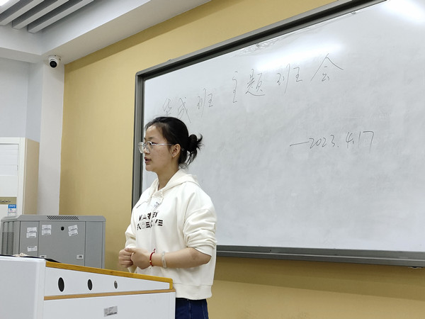 陈东旭借助学校通知文件向同学们详细介绍了互联网+等大学生创新创业类比赛的规则流程与要求,并向同学提出建议,希望同学们在此次比赛中能够做到主动申请,积极参与。陈东旭还向同学们通报了学校本科教学审核评估工作情况,并对同学们国家英语四级准备情况进行摸底。