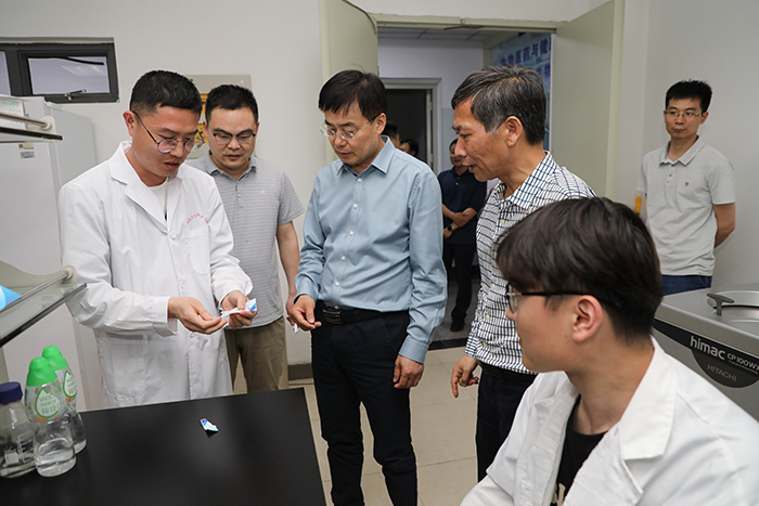 座谈会后,李震还陪同郭本纯一行实地调研考察了我校科技成果展和生物医药与健康研究院。
