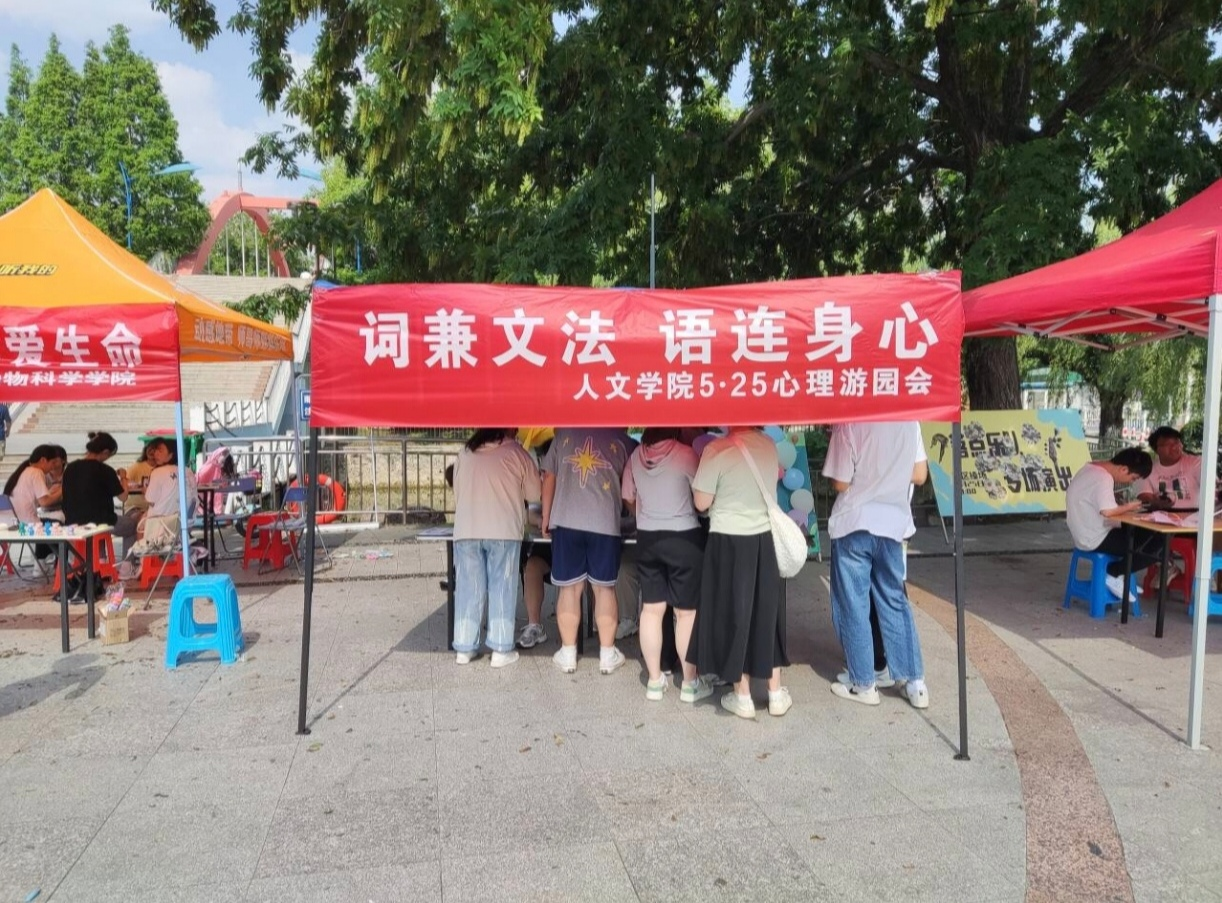 5月22日,人文学院在凤阳校区西区小广场举办“心智探索 游园启新程”心理游园会活动。现场设置了多个互动游戏环节,如考验同学们文化底蕴和快速反应能力的“诗词接龙”,巧妙地将法律知识融入传统诗词中的“法律诗词对对碰”等。活动现场气氛热烈,同学们热情高涨地参与各项游戏互动。在游戏中,他们不仅学到了心理健康知识,还增进了彼此之间的友谊。此次游园会通过寓教于乐的方式,不仅丰富了同学们的校园文化生活,还增进了同学们对心理健康的认识。
