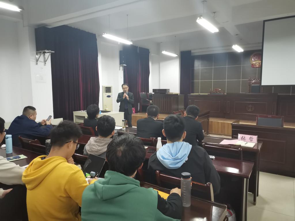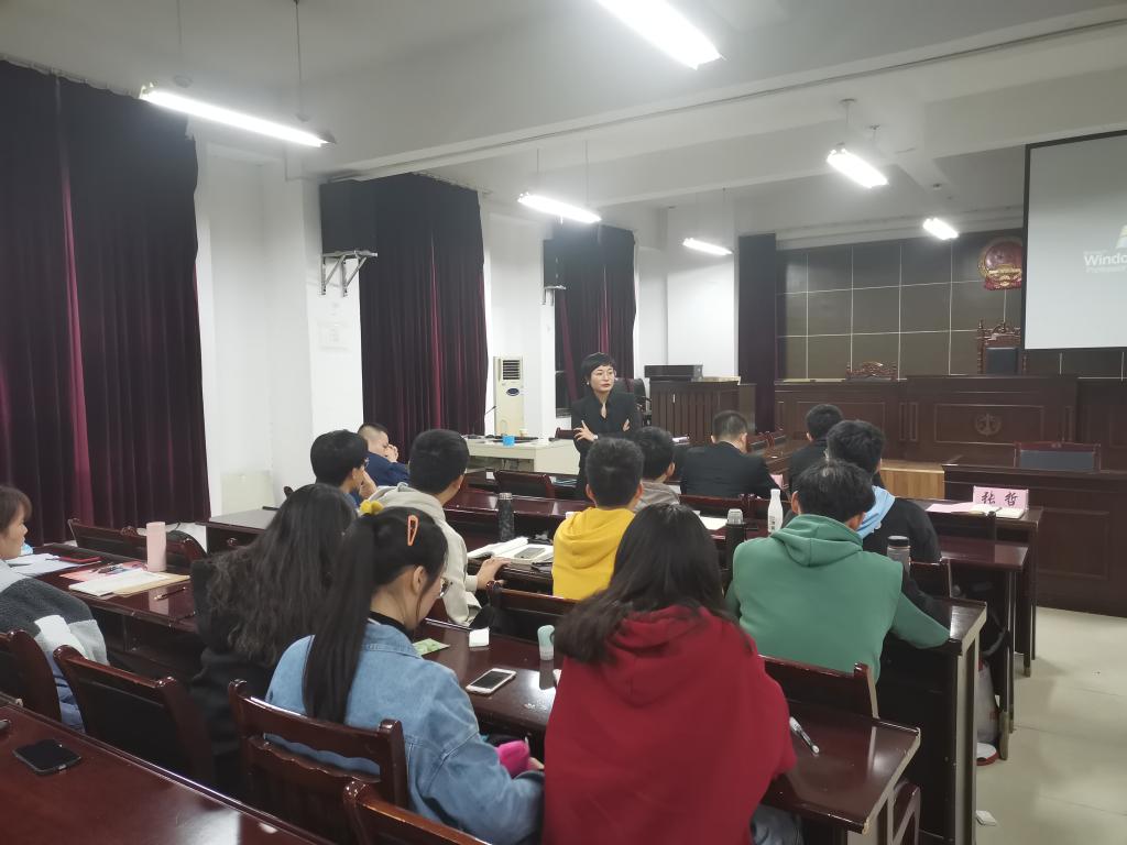 11月20日下午,人文学院特邀法学专业优秀校友在模拟法庭开展“现身说法”座谈会。座谈会由法学系主任张晓云主持。