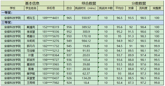 近日,由安徽省高等学校图书情报工作委员会、安徽省高等学校数字图书馆主办,安徽农业大学图书馆等共同承办的“‘外研讯飞杯’英语诵读大赛”获奖名单公布,我校14名同学从省内74所参赛高校的4000余名学生中脱颖而出,其中杨玲玉同学获得一等奖,戴潘亮等13位同学获得三等奖。获奖名单如下: