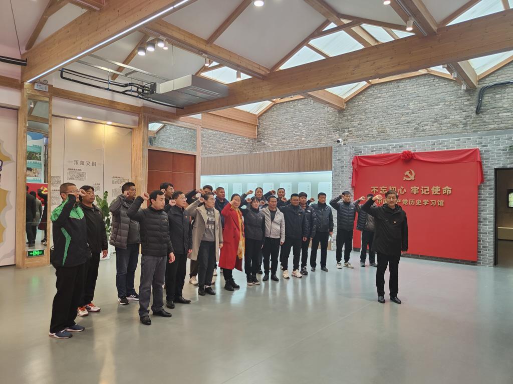 “中国共产党历史学习馆”是中国共产党建党101周年之际、在党的二十大召开前夕,禾泉小镇精心建设的一个蚌埠市“小个专”党史教育基地。在学习馆大厅,体育教学部党总支副书记(主持工作)王松华带领大家重温入党誓词,全体党员高举右拳,面向鲜红的中国共产党党旗庄严宣誓,用铿锵有力的誓词表达对党的忠诚,时刻警醒自己,不忘初心、牢记使命。他指出,伟大建党精神是中国共产党的精神之源,也是所有共产党员的心灵家园。广大党员要持续加强党史学习,时刻铭记我党的百年辉煌成就,悉心守护好“红色根脉”,在感悟和弘扬党的伟大精神的同时,不断从伟大建党精神中汲取前进智慧和奋进力量,在学深悟透上下功夫,在学用结合上出实招,把学习成效不断转化为推动学校体育教育事业高质量发展的动力和实效。