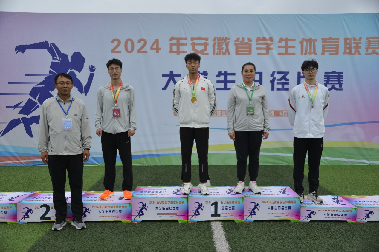 安徽省学生体育联赛大学生田径比赛作为高校体育赛事的重要组成部分,是全省规模最大、参与学校最多、竞技水平最高的单项赛事,发挥着以体育人、以体强身、以体健心的积极作用,同时也是检验高校体育教育成果、选拔田径运动人才,促进全省高校之间体育工作交流与共同发展的盛会。我校田径队共选派14位同学参加了甲组的比赛,由王杰老师担任领队兼教练员,孙文树、陶运三、闫松3位老师担任教练员。经过奋力拼搏,我校共获得1金、2银、2铜等共16个奖项的好成绩,并打破4项校最高纪录。其中,曹震(动物科学学院)获得男子甲组100米冠军;宋贺寒(管理学院)获得女子甲组100米栏亚军;马程(机械工程学院)获得男子甲组跳远亚军,并以6.85米的成绩打破我校跳远最高记录;杨明明(机械工程学院)、方和平(电气与电子工程学院)、江永奇(动物科学学院)、曹震(动物科学学院)获得男子甲组4×400米接力季军;宋贺寒(管理学院)、陈超群(化学与材料工程学院)、付静怡(建筑学院)、吕萌(外国语学院)获得女子甲组4×400米接力季军和女子甲组4×100米第六名,并以4分21秒32和54秒25的成绩分别打破了我校4×400米和4×100米最高记录;吴晨炜(食品工程学院)以4分22秒75的成绩打破我校1500米最高记录。