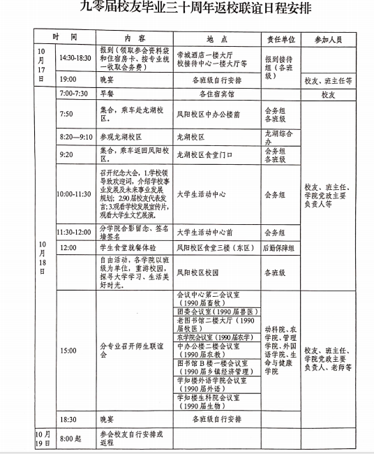 附件:九零届校友毕业三十周年返校联谊日程安排