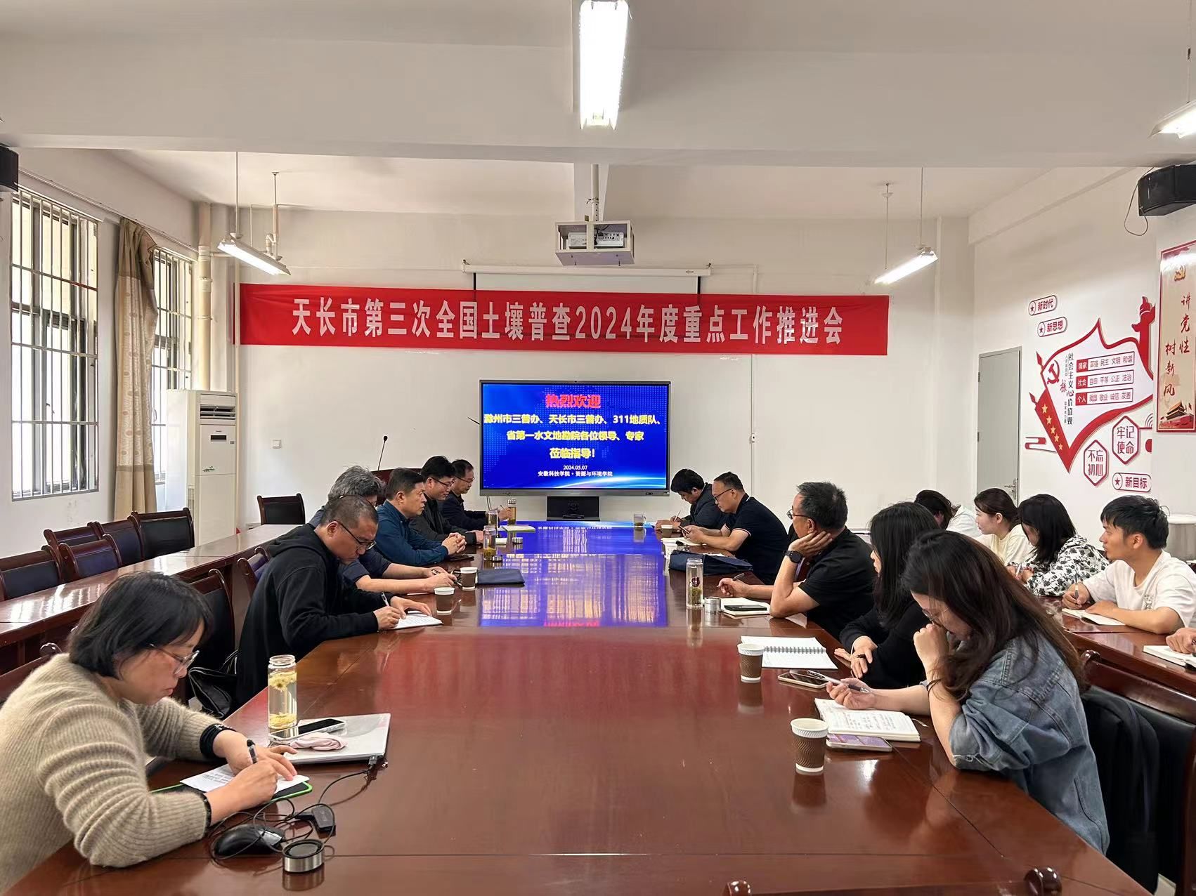 5月7日上午,天长市农业农村局二级主任科员赵荣俊率领天长市第三次全国土壤普查办公室人员前来我院,洽谈2024年度天长市三普重点工作与推进举措。滁州市三普办、表层样调查单位311地质队、剖面样调查单位省第一水文地勘院、质控单位乐玩在线资源与环境学院共20余人参加研讨。