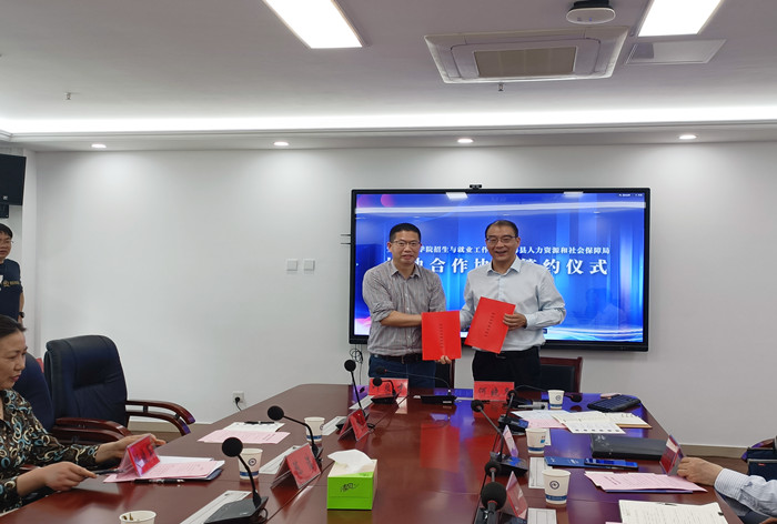 会上,招生与就业工作处与宁海县人社局签署校地合作签约。